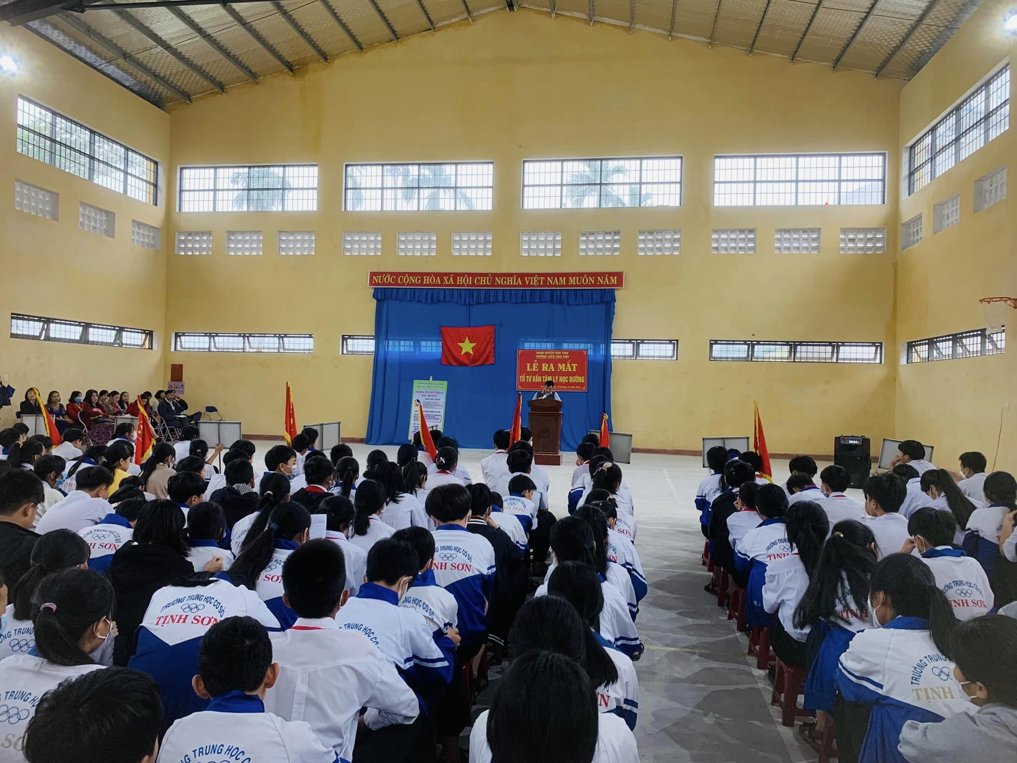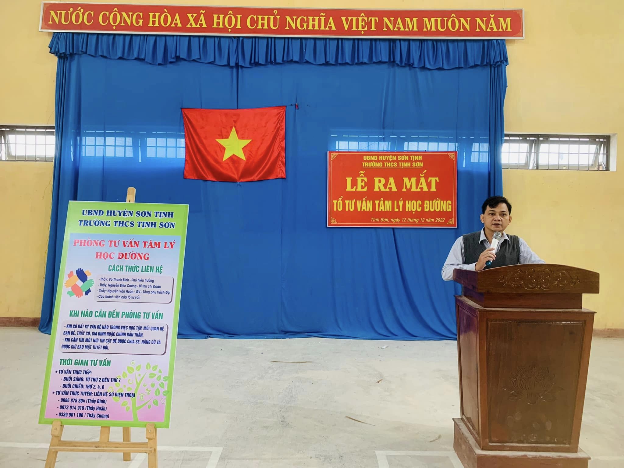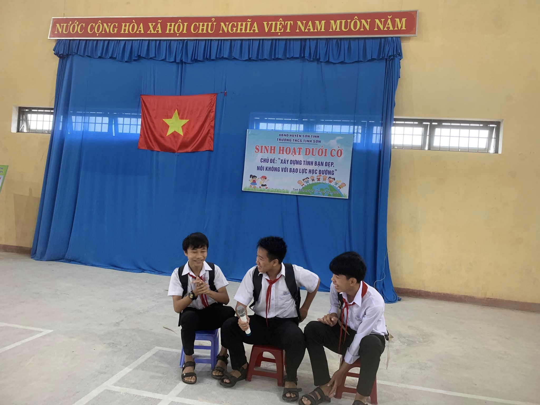 Sáng ngày 12/12/2022 trường THCS Tịnh Sơn ra mắt tổ tư vấn tâm lý học đường và sinh hoạt dưới cờ chủ điểm ” Xây dựng tình bạn đẹp nói không với bạo lực học đường “